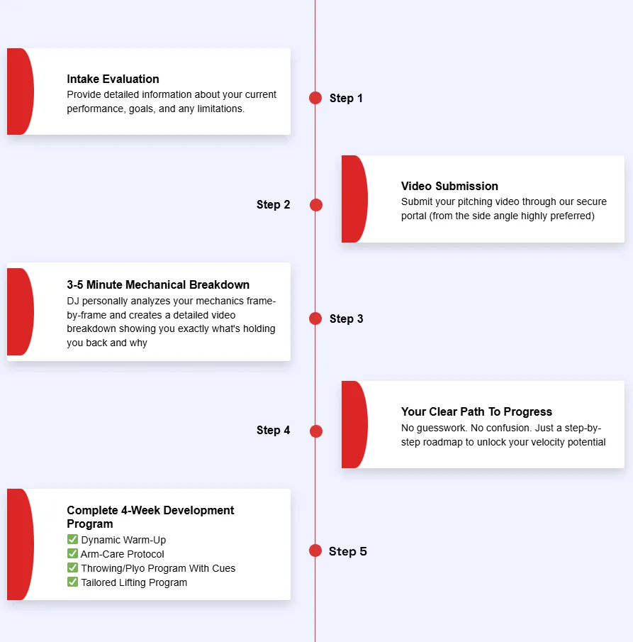 What if instead of guessing at your development, you had a former MLB pitcher who’s helped 150+ athletes throw 90+ MPH analyze your exact mechanical faults and design a personalized program just for you?